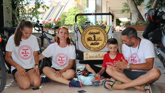 Kendilerine "Küçük 1 aile" adını veren baba Rüştü (42), anne Özgür (42), çocukları Ceren (14) ve Mithatcan Pekçedenöz (10), yolculuklarına Antalya'da mola verdi.