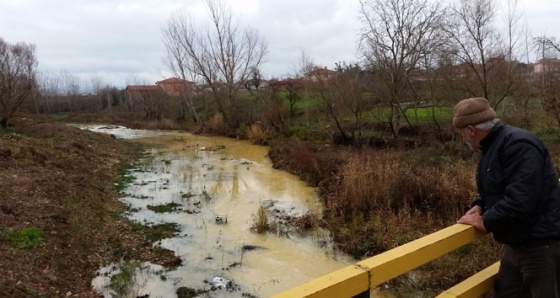 Küçük çay üzerinde bulunan Çan-Bayramiç yolu köprüsünde suların temiz ve berrak bir şekilde aktığını söyleyen Sezer, “100 metre ileride Katran derenin suları kızıl bir şekilde Küçük çaya akıyor. Temiz su ile ağır metallerin bulunduğu kızıl sular burada sarı renk alarak köpürmeye başlıyor. Bu sular 2 kilometre sonra Kocabaş çayına dökülüyor. Geçtiği yerdeki bütün canlıları öldürüyor” dedi.