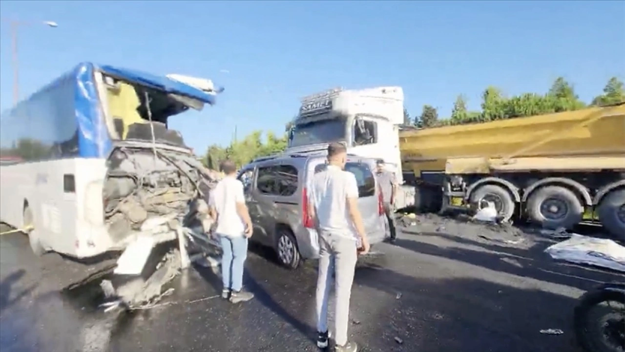 TEM Otoyolu'nun Edirne istikametinde otobüs ile hafriyat kamyonunun karıştığı zincirleme trafik kazası meydana geldi.