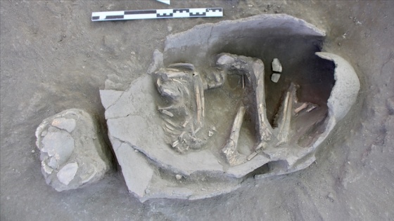 Bölgedeki kazıda, 5 bin yıl öncesine ait olduğu tahmin edilen ve çocuk mezarı olduğu belirlenen küp şeklinde 25 mezar ortaya çıkarıldı. Bunların içlerinde çocuk iskeletlerinin yanı sıra mühür, saç halkaları ve takılara rastlandı.