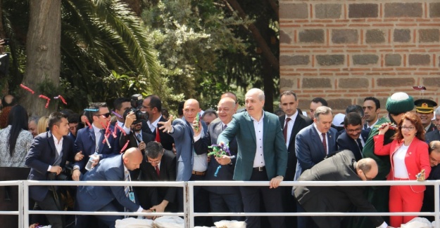 Manisa 476. Uluslararası Mesir Festivaline katılan Başbakan Yardımcısı Numan Kurtulmuş, Sultan Camisinin kubbe ve minarelerinden halka mesir saçarken, kendisi de kapmayı ihmal etmedi.
