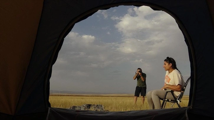 "Yoğun iş temposu sonrası burada günbatımını izleme seçimimiz yerinde oldu, hakikaten çok güzel anlar yaşıyoruz. Göle kamp malzememizle geldik, önce çadırı kurduk sonra tüpümüzü falan çıkardık güzel bir kahve yaptık. Sandalyemize oturup günbatımına karşı kahvelerimizi içtik. Bu yörenin gerçekten çok huzur verici doğası var. Buranın sık sık kuruması bizi çok üzüyor, o yüzden buraya dikkati çekmek ve doğayı temizlemek adına çöp topladık."