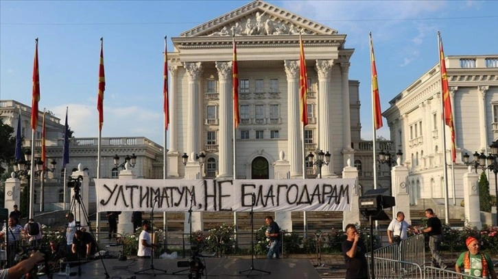 Kuzey Makedonya'daki en büyük Makedon muhalefet partisi İç Makedon Devrimci Örgütü-Makedonya Ulusal Demokratik Birliğinin (VMRO-DPMNE) çağrısıyla hükümet binası önünde eylem gerçekleştirildi.