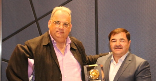 UWW Başkanı Lalovic konuşmasının ardından Başkan Musa Aydın’a teşekkür plaketi takdim etti.