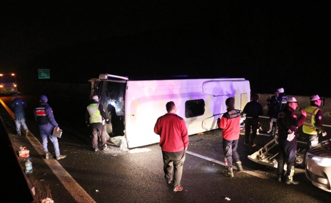 Lastiğe çarpan minibüs devrildi: 17 yaralı