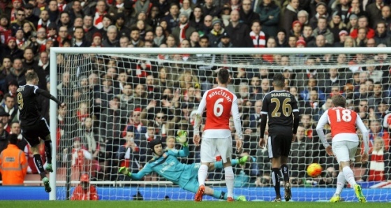 İngiltere Premier Lig'de fırtına gibi esen Leicester City'e Arsenal 'dur' dedi. Arsenal, ligin 25. haftası itibariyle 15 galibiyet, 8 beraberlik 2 mağlubiyetle 53 puanla lider durumda bulunan Leicter City'i ağırladı. 26. hafta mücadelesinde rakibini devirerek puan farkını kapatma peşinde olan Arsenal, ilk yarının son dakikalarında Vardy'nin penaltı golüyle 1-0 geriye düştü. Leicester, ikinci yarıda skoru korumak ve farkı ikiye çıkarmak istese de 49. ve 54. dakikada sarı kart gören Simpson, takımını 10 kişi bıraktı. Bir kişi eksik kalan rakibi karşısında kontrolü ele alan Arsenal, 70. dakikada Walcott ve 90+4. dakikada Wellbeck'in golüyle sahadan 3 puanla ayrıldı ve lider Leicester City ile olan puan farkını 2'ye indirdi. Ranieri'nin öğrencileri ise 7 maç sonra mağlup oldu.