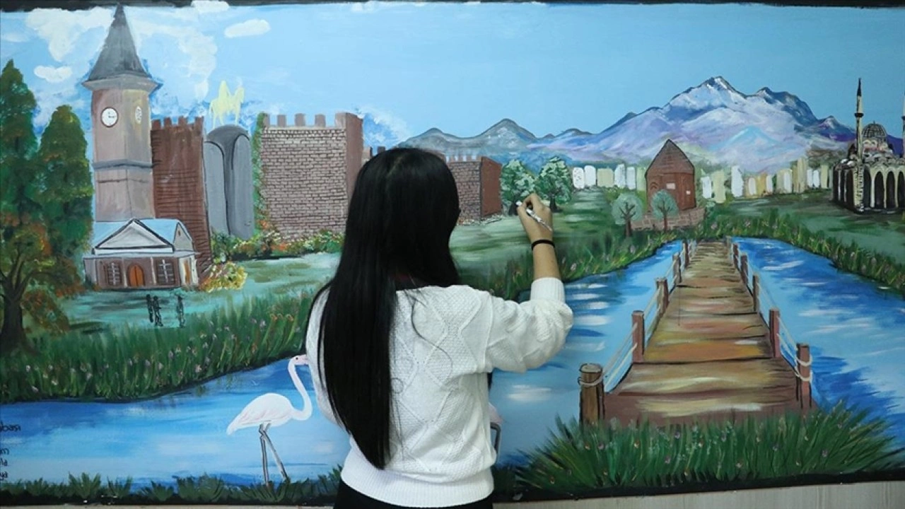Bütün malzemeleri öğretmenleri Yasin Örer ve Emine Kuraç tarafından temin edilen öğrenciler, okulun boş duvarlarına Mimar Sinan ve eserleri, kitap, yılkı atları, peribacaları, spor kortu, kale, camiler ve kentin tarihi yerlerini resmetti.