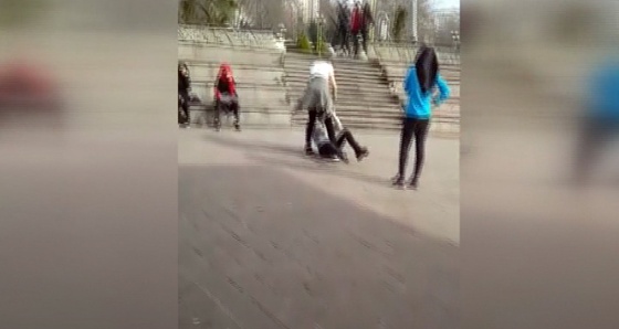 Okul çıkışında amfi tiyatroya gelen iki liseli kısa süren tartışmanın ardından kavgaya tutuştu. Birbirlerinin saçlarını çekip yere yatırıp sürüklemeye çalışan liseli kızları diğer arkadaşları da hem cep telefonu ile kaydetti hem de eğlenerek izledi.