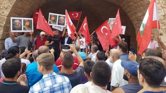 Türk bayraklarının yanı sıra Osmanlı padişahı 2. Abdülhamid Han ve Osmanlı armasının fotoğraflarının yanı sıra Lübnan bayrakları taşıyan göstericiler, Osmanlı Devleti ve Türkiye'ye destek sloganları attı.