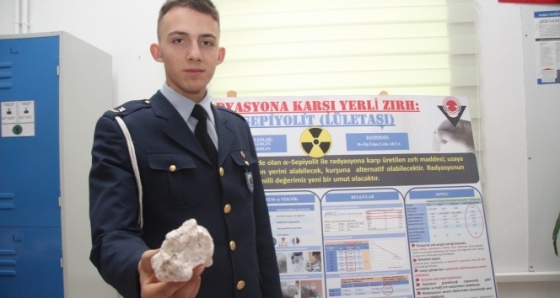 Zırhlama malzemeleri olarak dünyada sağlık alanlarında kurşun, uzayda da alüminyum kullanıldığını, ancak bu malzemelerin birçok olumsuz tesiri olduğunu belirten öğrenciler, “Araştırmalarımız neticesinde lületaşının bir türü olan alfa sepiyolitiyi bulduk. Çok hafif ve şekil verilebilmesi kolay bir ürün. Dünya üzerinde lületaşının yüzde 70’i Türkiye'de bulunuyor. Ama maalesef bu milli kaynağımız giderek değerini kaybediyor. Süs eşyası dışında hiç bir yapılmamış. Bu sepiyolit maddemizi ilk imalatçıdan aldıktan sonra toz haline getirip 15 mikrona düşürdük ve buna gama radyasyon testleri uyguladık. Gama radyasyon testinde sadece 1 santimetrelik bir kalınlıkla yüzde 50’sini, yüzde 90’ını ise sadece 3 santimetrelik bir kalınlıkta tutmayı başardık” diye konuştu.