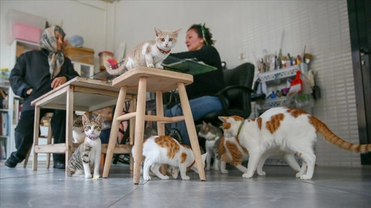 Dükkanın camekanından görülebilen kedilerin hayvanseverlerin ilgisini çektiğini anlatan Yıldırım, şöyle konuştu: