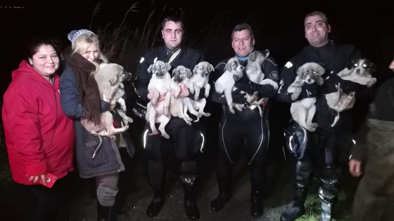İzmir itfaiyesi, Menemen ilçesinde Gediz Nehri'nin taşması sonucu bir tepecikte mahsur kalan köpek ve 9 yavrusuna botla ulaştı.