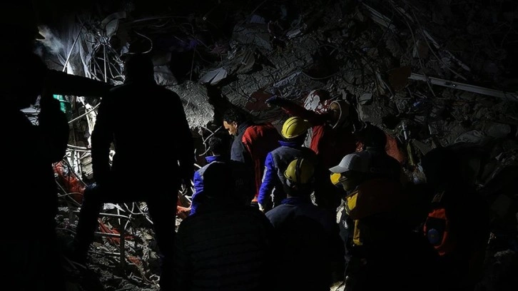 Merkez üssü Pazarcık ve Elbistan ilçeleri olan 7,7 ve 7,6 büyüklüğündeki depremlerin ardından Malatya'da yıkılan bir binada arama kurtarma çalışmaları devam etti.