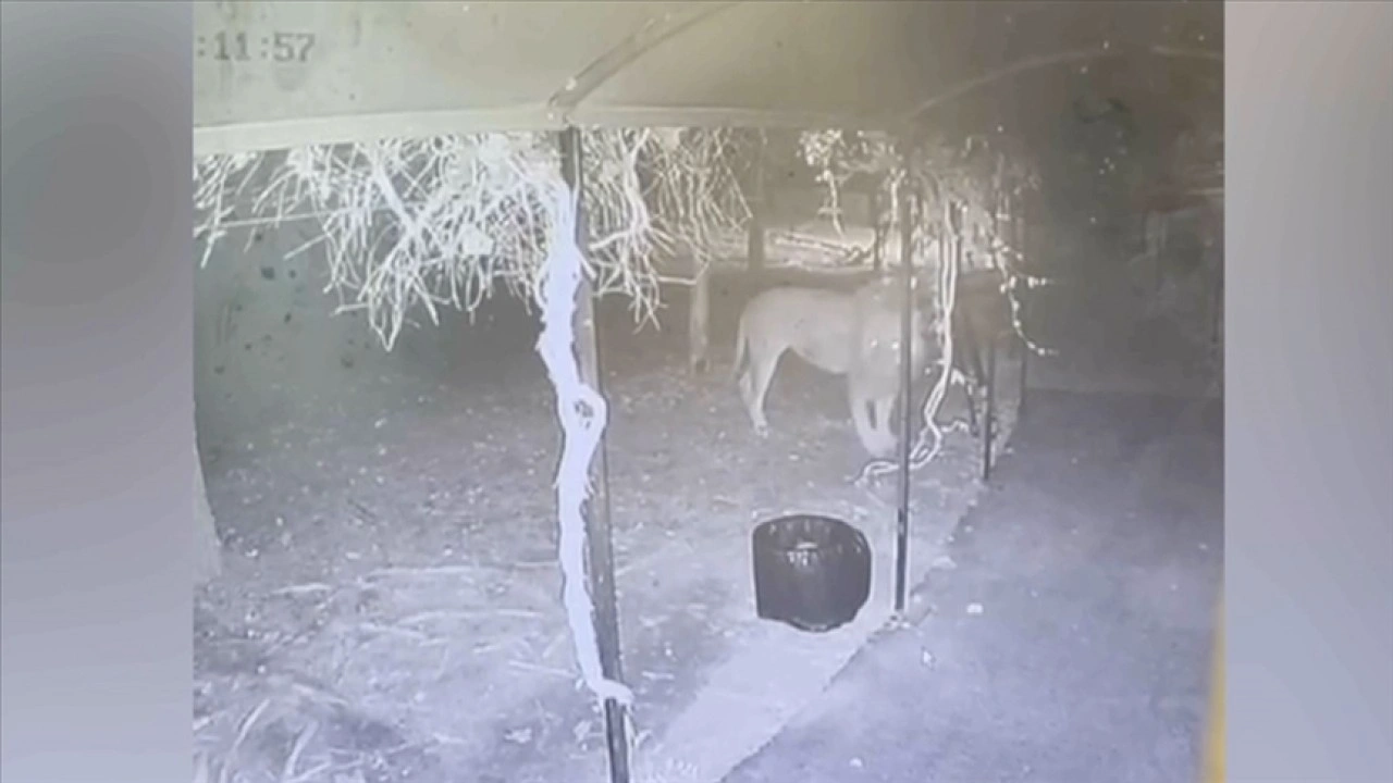 "Zeus" isimli aslanın hayvan parkındaki kafesinden kaçış anları, güvenlik kamerasınca kaydedildi.