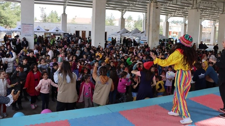 Mardin'in Midyat ilçesinde misafir edilen depremzede çocuklar için sirk gösterisi yapıldı