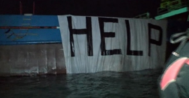 İstanbul Zeytinburnu açıklarındaki kuru yük gemisinin bordasında “Help (İmdat)” yazısını fark eden sivil toplum örgütü GEDDAD hayat kurtardı.