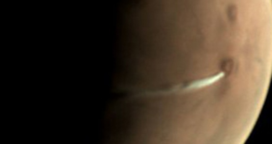 ESA, 13 Eylül'den beri yaklaşık 19 kilometre yüksekliğindeki yanardağdaki aktiviteyle meydana geldiği düşünülen ince uzun bulutu inceliyordu. 1496 kilometre uzunluğundaki Mars atmosferindeki hava tarafından oluşturulan bir kütledir.