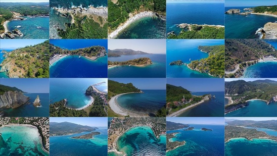 İzole tatil yapmak isteyenlere de alternatifler sunan koylar, havadan görüntülendi.