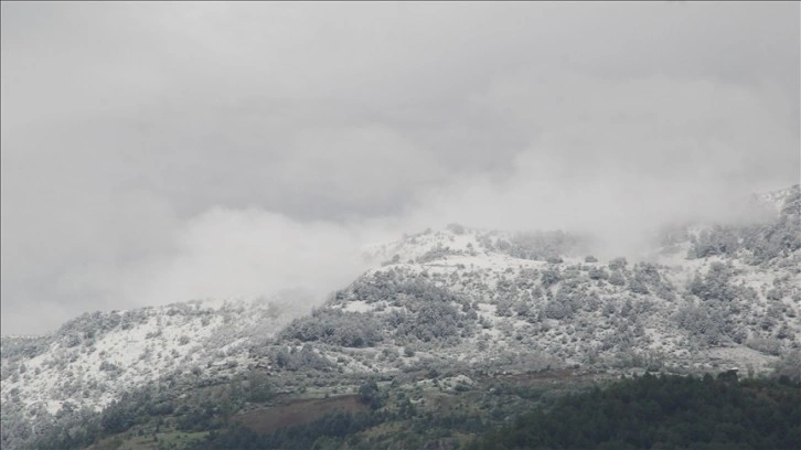 Hava sıcaklığının düştüğü kentte, yağışın ardından dağların zirveleri beyaza büründü.