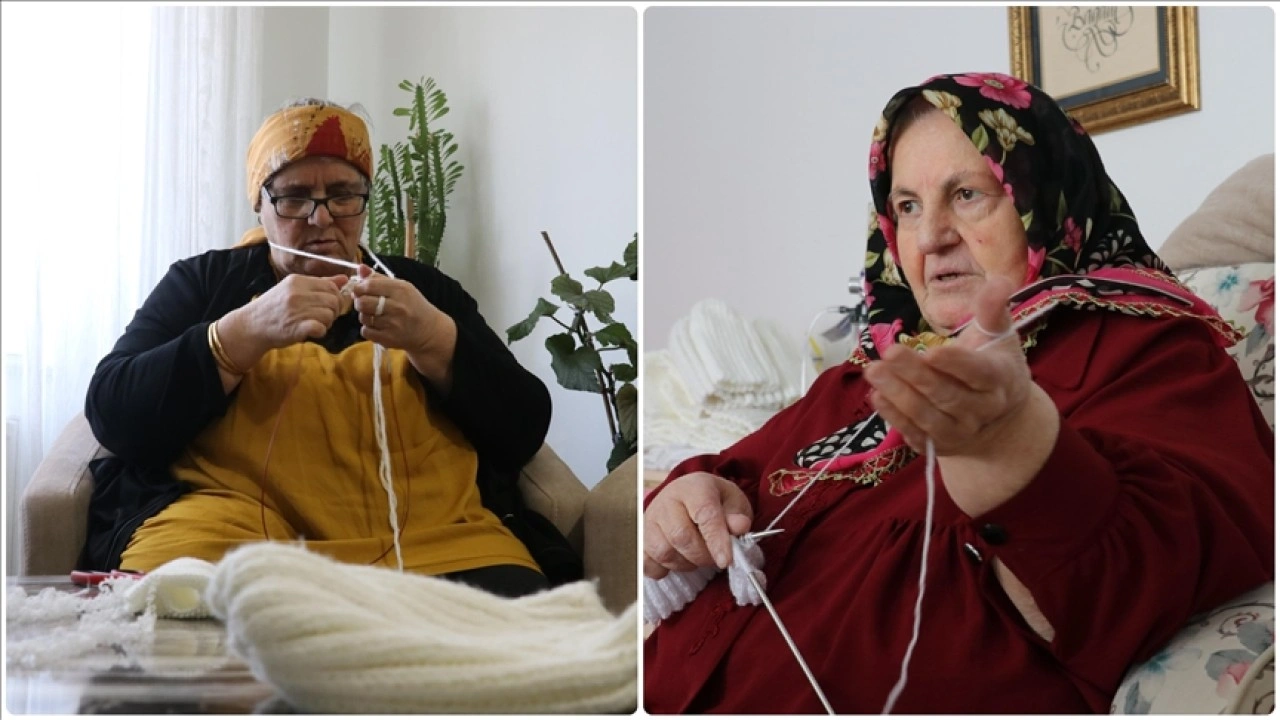 İçişleri Bakanı Ali Yerlikaya'nın da teşekkür ettiği kadınlar, şimdi gelecek kışa yetiştirmek için yine el birliğiyle bere örmeye devam ediyor. Özmen ve Bağdat, dualar okuyarak ördükleri berelerin askerleri soğuktan korumasını diliyor.