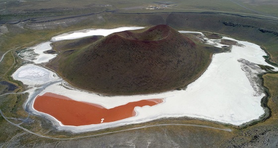 “Bölgede oluşan turuncu renkler mikroorganizmaların habercisi”Bölgede zaman zaman yoğunlaşan yağışlarla gölde su tabakası oluşuyor. Oluşan su tabakasındaki turuncu renk alan kısmı hakkında bilgi veren Prof. Dr. Fetullah Arık, “Meke Gölü tuzlu bir bölge. İçerisinde normal canlıların yaşamasına çok fazla izin vermiyor. Geçmişte zaten bu gölden tuz üretimi gerçekleştirilmiş. Bu tuz ortamında da yaşayabilecek mikroorganizmalar ve bakteriler söz konusu. Su giderek azaldığı için bakterilerin oluşturduğu görüntü turuncu ve kırmızı renkli oluyor. O bölgede ise şu anda mikroorganizmalar ve bakterilerde çok fazla bir artış olduğunu söyleyebiliriz” dedi.