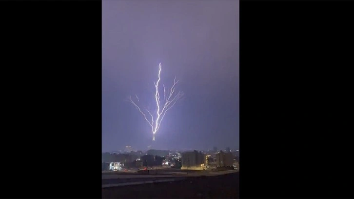 Sosyal medyada yayımlanan görüntülerde, yıldırımın saat kulesine birçok koldan isabet ettiği yer aldı.