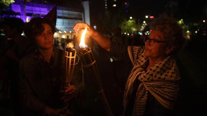Başkent Meksiko'da "Filistin için bir ışık" adı altında toplanan yüzlerce gösterici bayrak ve dövizlerle Filistin'e destek sloganları attı.