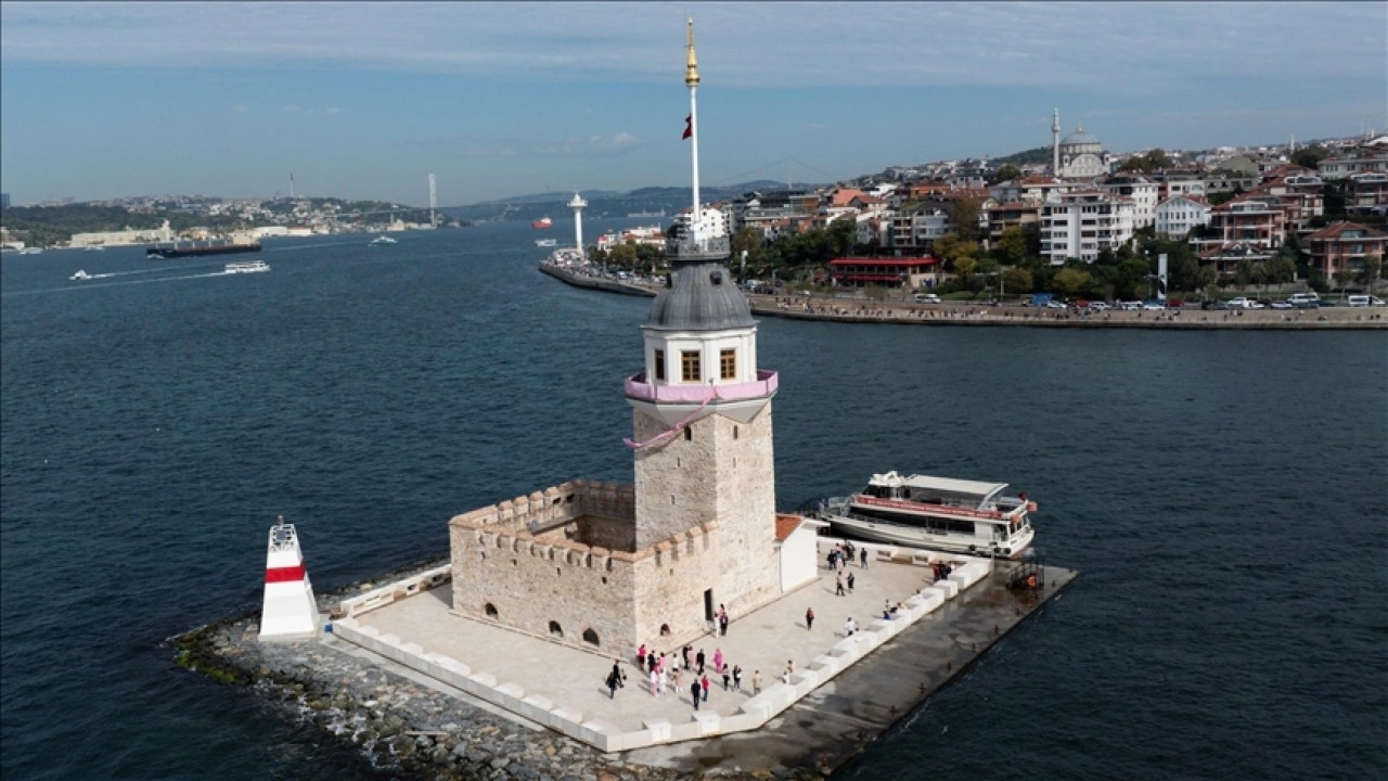 Meme kanserine karşı Kız Kulesi'ne pembe kurdele asıldı