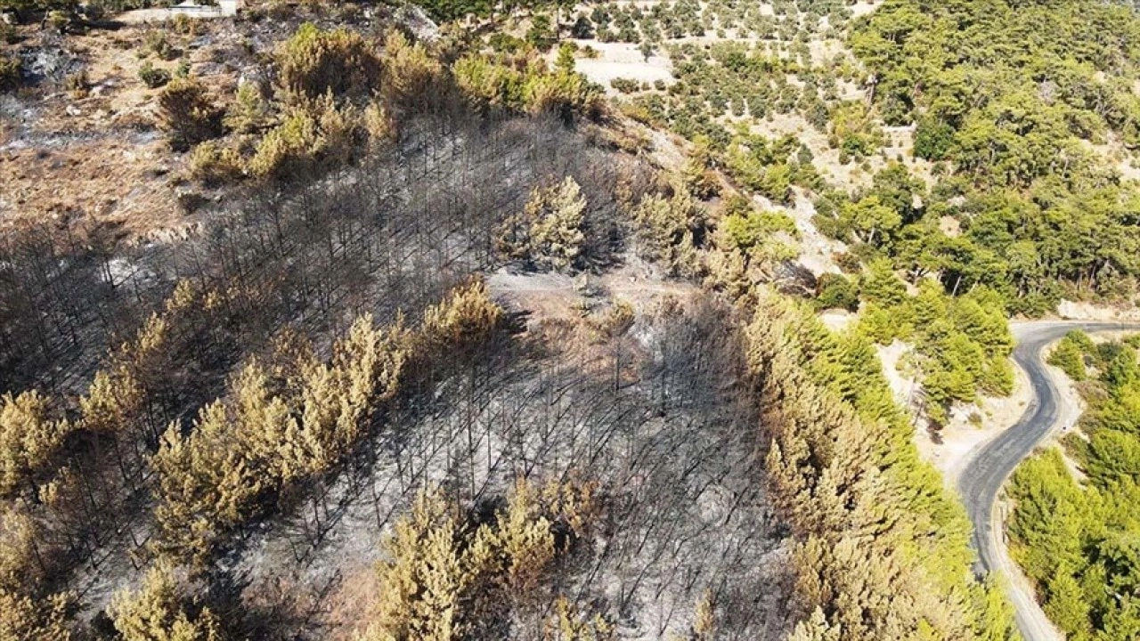 Bölgede soğutma çalışmaları da devam ediyor. Anadolu Ajansı (AA) ekibi tarafından dron ile çekilen görüntülerde, yeşil örtüye sahip alanın yangının ardından siyaha büründüğü yer alıyor. Görüntülere, yangında hasara uğrayan evler de yansıyor.