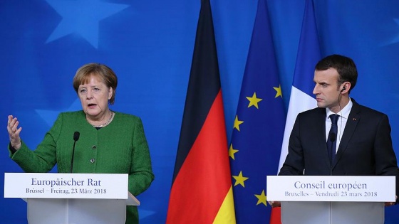 Merkel, hızlı değişen dünyada AB'deki ortak dış ve güvenlik politikasının daha güçlü bir şekilde ortaya konması gerektiği konusunda Macron ile hemfikir kaldıklarını aktardı.