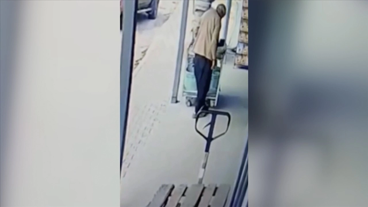 Ersin'in çamurlu ayakkabısını çıkarması ve markette alışveriş yapması, iş yerinin güvenlik kamerasınca kaydedildi.