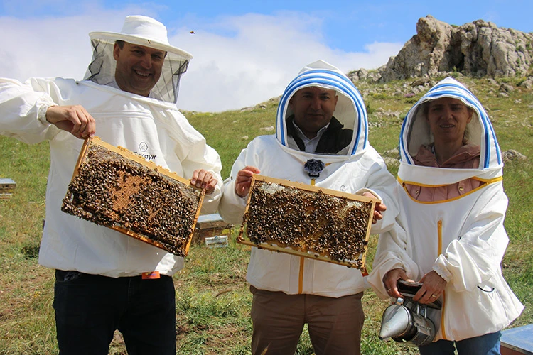 Chinali, Eğriçayır Yaylası'nda bal üretimi yapılan alanları gezdi. Arıcılarla görüşen Chinali, kovanlardaki bal peteklerini çıkardı.