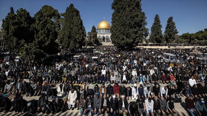 Filistinlilerin yanı sıra Türkiye ve diğer ülkelerden çok sayıda Müslüman ziyaretçinin yoğun katılım gösterdiği cuma namazında Kıble Mescidi ve Kubbetü’s-Sahra’nın yanı sıra Harem-i Şerif’in avlusu da ibadet edenlerle doldu.
