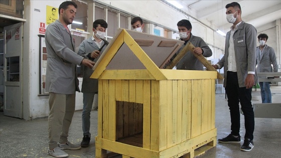 Üretimde kullandıkları demir profil ve diğer malzemelerin ahşap ambalaj kutuları içinde okullarına geldiğine işaret eden Doğan, "İş bittikten sonra bunlar çöp olmaktadır. Bu geri dönüştürülebilir ambalaj atıklarını değerlendirmeye karar verdik. Yaz döneminde öğrencilerin uygulamalı derslerini telafi etmek hem de sosyal sorumluluk projesi ile can dostların barınma imkanına kavuşmasını istedik." diye konuştu.