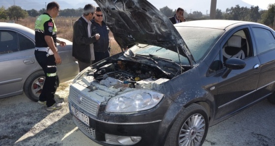 Milas’ta 23 Nisan Bulvarı’ndan otogar istikametine doğru seyir halinde bulunan Umut Kölgeli idaresindeki 09 BE 103 plakalı otomobilin motor bölümünden henüz belirlenemeyen bir nedenle dumanlar yükselmeye başladı. Yükselen dumanları fark eden sürücü Kölgeli, otomobili emniyet şeridinde durdurarak müdahalede bulundu.
