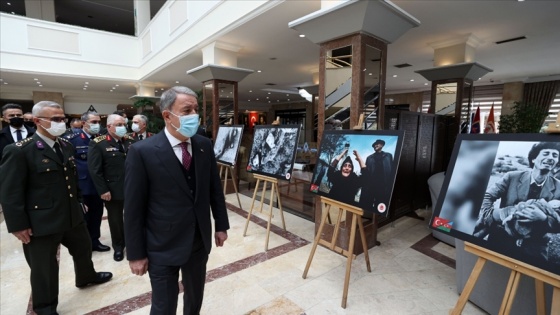 Azerbaycan'ın İstanbul Başkonsolosluğunun katkılarıyla hazırlanan sergiyi gezen Akar ve Komutanlar, fotoğraflara ilişkin bilgi aldı.