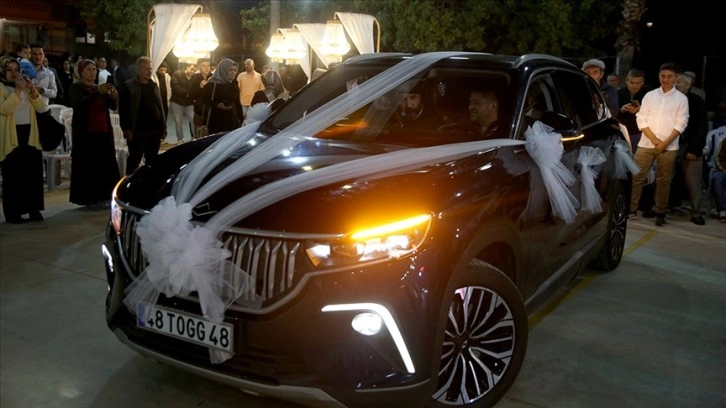 Tanıtım amacıyla ilçeye getirilen Togg, nişanı yapılacak Melis Yıldız ile AK Parti Karaçulha Mahallesi temsilcisi Ali Ozan Çınar'ın oğlu Mustafa Çınar için de süslendi. Genç çiftin bindiği Togg, nişanın yapılacağı Karaçulha Mahallesi'ndeki ilkokula getirildi. Bu sırada davetliler de Togg'u görme fırsatı buldu.