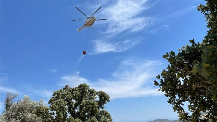 Muğla'nın Bodrum ilçesinde, yerleşim yerlerine yakın makilik ve tarım arazisinde çıkan yangına ekipleri müdahale ediliyor.