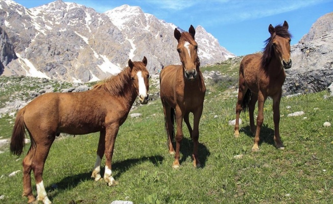 Munzur Dağları'nda gruplar halinde dolaşıp beslenen ve geceleri de doğada geçiren atlar, besicilerin yaylaya göç edeceği haziran ayında yakalanıp yaylaya yük taşımak için kullanılıyor.
