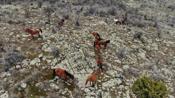Uşak ve Kütahya arasındaki Murat Dağı'nın güney cephesinde ilk olarak 2016'da sayıları 20 iken görüntülenen yılkı atlarının sayısı her geçen yıl artıyor.