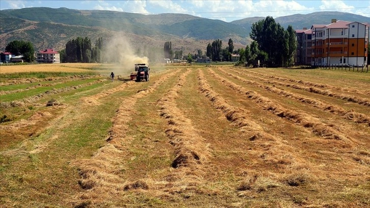 Hayvancılığın yaygın yapıldığı kentte, erken saatlerde tarlaların yolunu tutan çiftçiler, biçtikleri otu patoz makinesinde saman haline getiriyor.