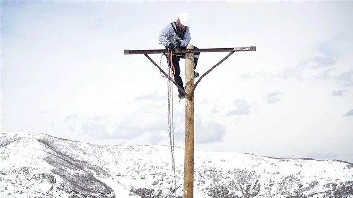 Kar kalınlığının iki metreyi bulduğu kırsal bölgede araçlar ilerleyemediği için yürüyerek arızanın bulunduğu noktaya ulaşan ekipler, gerekli onarımı yaparak kesintinin olduğu bölgeye enerji verdi.