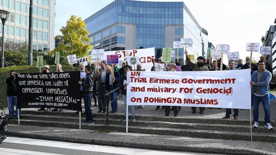 “Soykırımı durdurun”, “Arakanlı Müslümanlara yönelik etnik temizliği durdurun” yazılı dövizler taşıyan göstericiler, AB ve insan hakları örgütlerine duruma müdahale etmeleri çağrısında bulundu.
