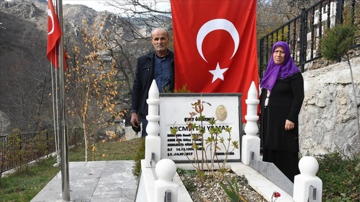 Necmettin Yılmaz'ın annesi Gülay ve babası Hamit Yılmaz, 24 Kasım Öğretmenler Günü dolayısıyla oğullarının, Gümüşhane'nin Torul ilçesine bağlı Demirkapı köyünde bulunan mezarını ziyaret etti..