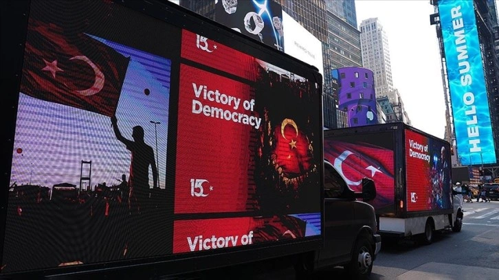 New York’un en işlek cadde ve alanlarında gün boyu gezen led ekranlı kamyonetlerde, "Demokrasinin Zaferi" başlığı ile hazırlanan 15 Temmuz görselleri ABD’lilerin ilgisine sunuldu.