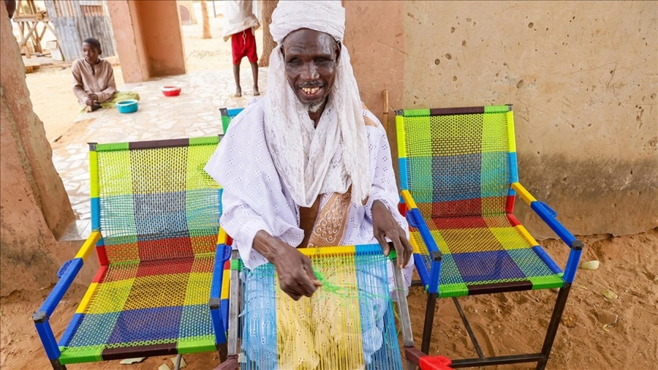 Mobilya yapı m sürecine değinen Muktari-Bachaka, "Önce bir kaynak ustası na metal iskeleti yaptırıyorum. Daha sonra sandalye, masa ya da bebek yatağını plastik iplerle tek tek örüyorum." dedi.
