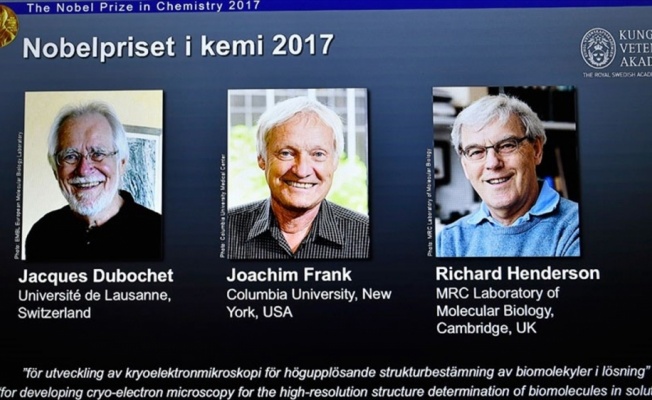 ANKARA (AA) - Nobel Kimya Ödülü'nün bu yılki sahibi, numunelerin son derece düşük sıcaklıkta incelenmesine olanak tanıyan kiro-elektron mikroskobisini geliştiren İsviçreli Jacques Dubochet, Alman Joachim Frank ve İngiliz Richard Henderson'un oldu.