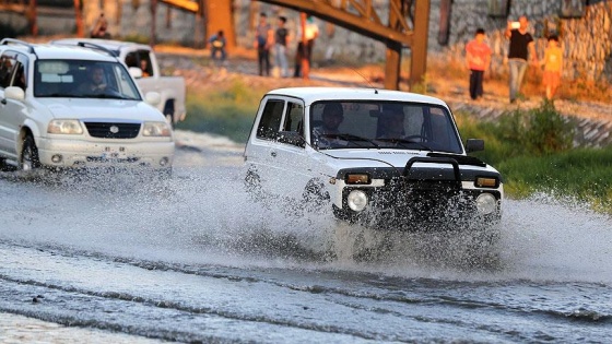 Türkiye'nin çeşitli illerinden kentte gelen yaklaşık 80 araç, şehir turunun ardından kent içerisinden geçen Asar Deresi'ne girerek gösteri yaptı.