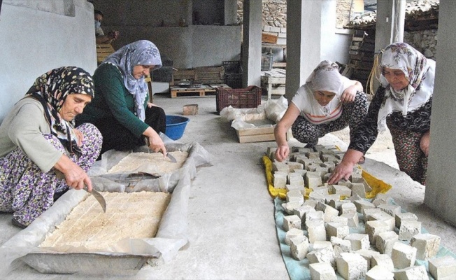 İZMİR(AA) - İzmir'in Ödemiş ilçesinde, ortaokul öğrencilerinin hazırladığı tarım projesi, kadın velilerin çalışmalarıyla hayata geçirildi. Çocukların yaylalardan topladığı kantaronlar, kadınların elinde sabuna dönüştü.