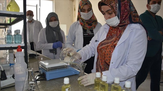 Özel Cizre Organize Sanayi Bölgesi Mesleki ve Teknik Anadolu Lisesinde görevli 6 kimya öğretmeni, Kovid-19 tedbirlerine destek vermek için okulun kapalı olmasını fırsat bilerek atölyede el dezenfektanı ve kolonya üretmek için çalışma başlattı.